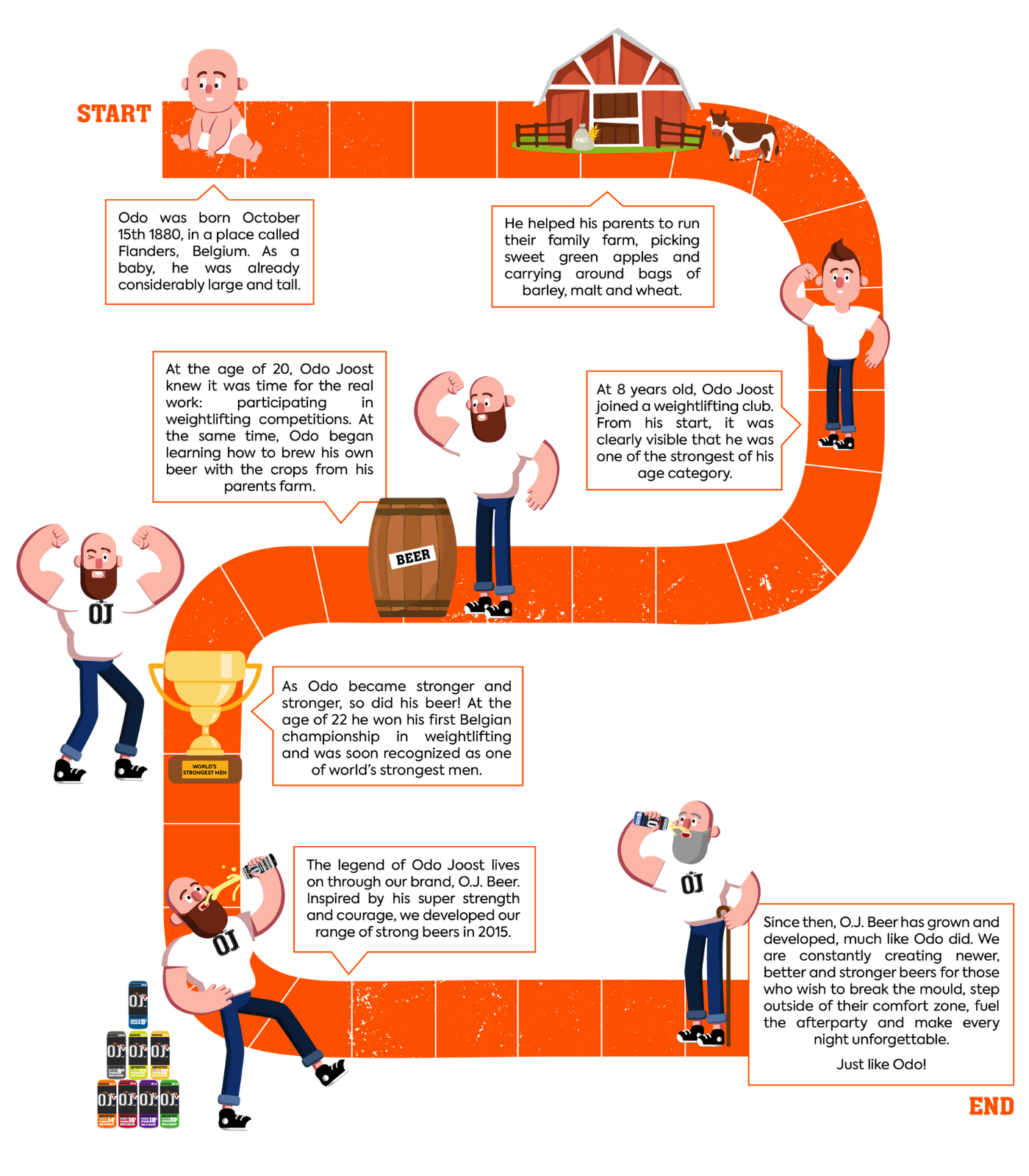 O.J. Beer is a new taste experience inspired by one of the world’s strongest men, Odo Joost. Our beers are Belgian-born (just like Odo), refreshing and strong with a taste that leaves you wanting more.
