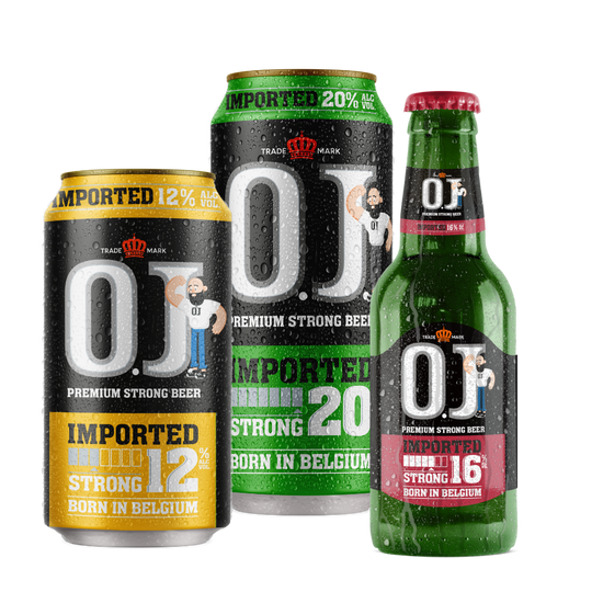 Explore O.J. Strong BeerA full bodied, quality lager with a punchy alcohol content. The range consists of sever strong beers with ABV’s ranging from 8.5% up to a whopping 20%. O.J. Strong Beer is available in a 500ml & 330ml double matt can and 250ml green glass bottle.